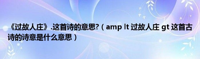 关于《过故人庄》.这首诗的意思?,amp lt 过故人庄 gt 这首古诗的诗意是什么意思这个很多人还不知道,今天菲菲来为大家解答以上的问题,现在让我们一起来看看吧!
