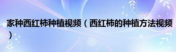 关于家种西红柿种植视频,西红柿的种植方法视频这个很多人还不知道,今天菲菲来为大家解答以上的问题,现在让我们一起来看看吧!