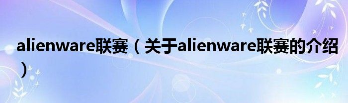 大家好,今天小乐来为大家解答以上的问题。alienware联赛,关于alienware联赛的介绍很多人还不知道,现在让我们一起来看看吧!