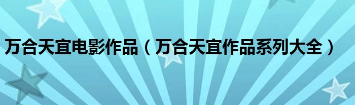 大家好,小晋来为大家解答以下问题,关于万合天宜电影作品,万合天宜作品系列大全很多人还不知道,今天让我们一起来看看吧!