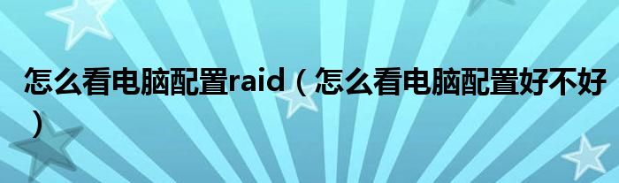 大家好,雨雨来为大家解答以上问题,怎么看电脑配置raid,怎么看电脑配置好不好很多人还不知道,现在让我们一起来看看吧!