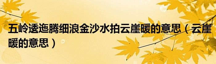 大家好,小晋来为大家解答以下问题,关于五岭逶迤腾细浪金沙水拍云崖暖的意思,云崖暖的意思很多人还不知道,今天让我们一起来看看吧!