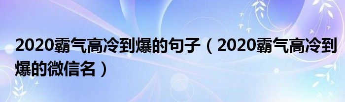 大家好,雨雨来为大家解答以上问题,2020霸气高冷到爆的句子,2020霸气高冷到爆的微信名很多人还不知道,现在让我们一起来看看吧!