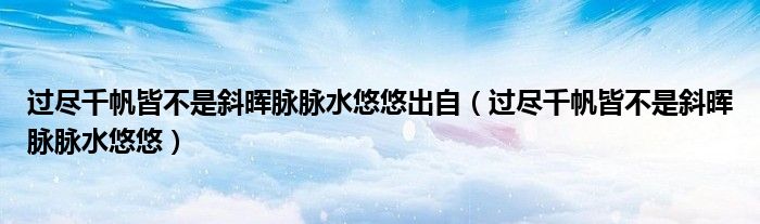 关于过尽千帆皆不是斜晖脉脉水悠悠出自,过尽千帆皆不是斜晖脉脉水悠悠这个很多人还不知道,今天菲菲来为大家解答以上的问题,现在让我们一起来看看吧!