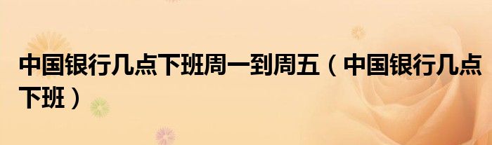 关于中国银行几点下班周一到周五,中国银行几点下班这个很多人还不知道,今天菲菲来为大家解答以上的问题,现在让我们一起来看看吧!