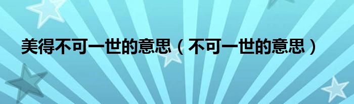 关于美得不可一世的意思,不可一世的意思这个很多人还不知道,今天菲菲来为大家解答以上的问题,现在让我们一起来看看吧!