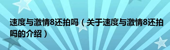 大家好,今天小乐来为大家解答以上的问题。速度与激情8还拍吗,关于速度与激情8还拍吗的介绍很多人还不知道,现在让我们一起来看看吧!