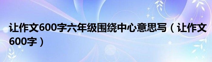 关于让作文600字六年级围绕中心意思写,让作文600字这个很多人还不知道,今天菲菲来为大家解答以上的问题,现在让我们一起来看看吧!