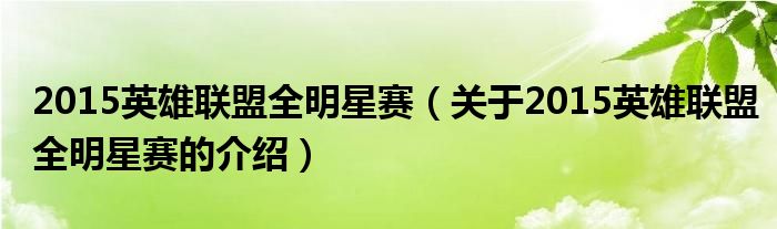 大家好,今天小乐来为大家解答以上的问题。2015英雄联盟全明星赛,关于2015英雄联盟全明星赛的介绍很多人还不知道,现在让我们一起来看看吧!