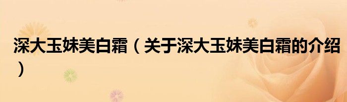 大家好,今天小乐来为大家解答以上的问题。深大玉妹美白霜,关于深大玉妹美白霜的介绍很多人还不知道,现在让我们一起来看看吧!