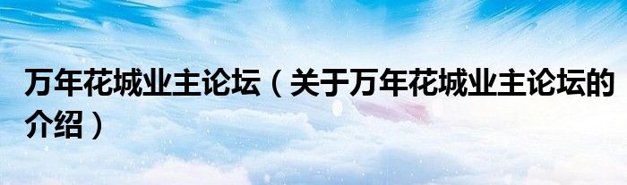 万年花城业主论坛(关于万年花城业主论坛的介绍)