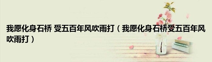 关于我愿化身石桥 受五百年风吹雨打,我愿化身石桥受五百年风吹雨打这个很多人还不知道,今天菲菲来为大家解答以上的问题,现在让我们一起来看看吧!