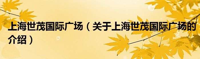 大家好,今天小乐来为大家解答以上的问题。上海世茂国际广场,关于上海世茂国际广场的介绍很多人还不知道,现在让我们一起来看看吧!