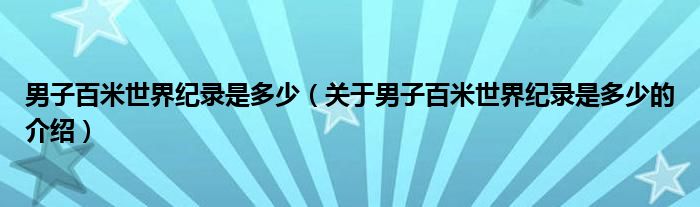 大家好,小都来为大家解答以上的问题。男子百米世界纪录是多少,关于男子百米世界纪录是多少的介绍很多人还不知道,现在让我们一起来看看吧!