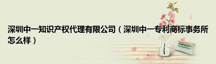 关于深圳中一知识产权代理有限公司,深圳中一专利商标事务所怎么样这个很多人还不知道,今天菲菲来为大家解答以上的问题,现在让我们一起来看看吧!