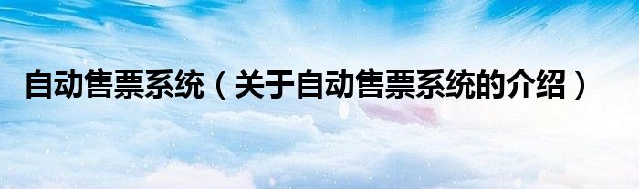 自动售票系统(关于自动售票系统的介绍)