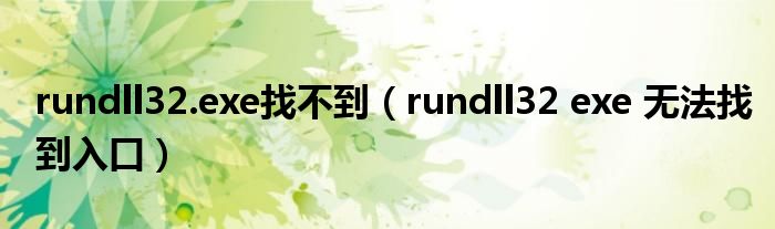 关于rundll32.exe找不到,rundll32 exe 无法找到入口这个很多人还不知道,今天菲菲来为大家解答以上的问题,现在让我们一起来看看吧!
