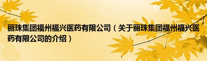大家好,小都来为大家解答以上的问题。丽珠集团福州福兴医药有限公司,关于丽珠集团福州福兴医药有限公司的介绍很多人还不知道,现在让我们一起来看看吧!