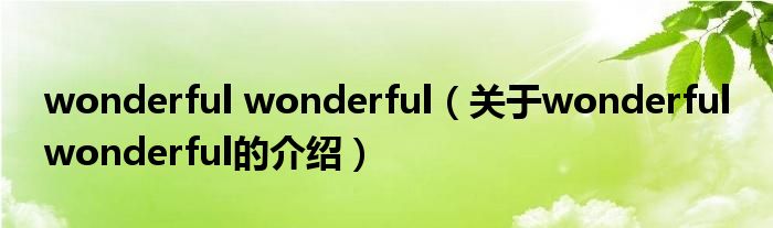 wonderful wonderful(关于wonderful wonderful的介绍)