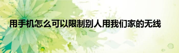 关于用手机怎么可以限制别人用我们家的无线这个很多人还不知道,今天菲菲来为大家解答以上的问题,现在让我们一起来看看吧!
