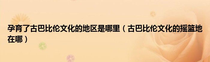 关于孕育了古巴比伦文化的地区是哪里,古巴比伦文化的摇篮地在哪这个很多人还不知道,今天菲菲来为大家解答以上的问题,现在让我们一起来看看吧!