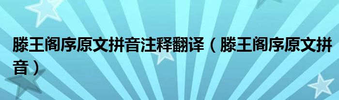 关于滕王阁序原文拼音注释翻译,滕王阁序原文拼音这个很多人还不知道,今天菲菲来为大家解答以上的问题,现在让我们一起来看看吧!