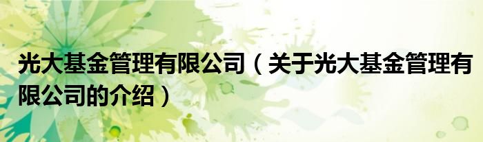 大家好,小都来为大家解答以上的问题。光大基金管理有限公司,关于光大基金管理有限公司的介绍很多人还不知道,现在让我们一起来看看吧!