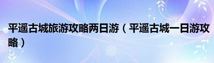 关于平遥古城旅游攻略两日游,平遥古城一日游攻略这个很多人还不知道,今天菲菲来为大家解答以上的问题,现在让我们一起来看看吧!