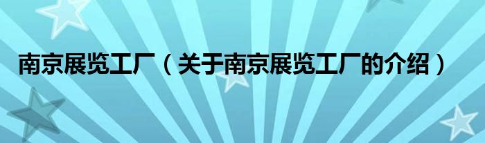 大家好,小都来为大家解答以上的问题。南京展览工厂,关于南京展览工厂的介绍很多人还不知道,现在让我们一起来看看吧!