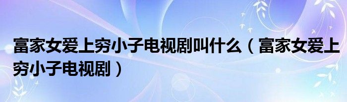 富家女爱上穷小子电视剧叫什么(富家女爱上穷小子电视剧)