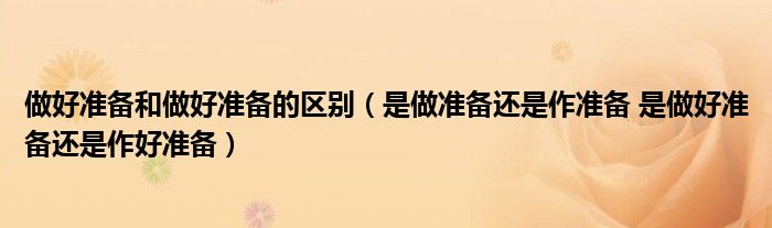 关于做好准备和做好准备的区别,是做准备还是作准备 是做好准备还是作好准备这个很多人还不知道,今天菲菲来为大家解答以上的问题,现在让我们一起来看看吧!