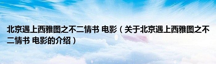 大家好,小都来为大家解答以上的问题。北京遇上西雅图之不二情书 电影,关于北京遇上西雅图之不二情书 电影的介绍很多人还不知道,现在让我们一起来看看吧!