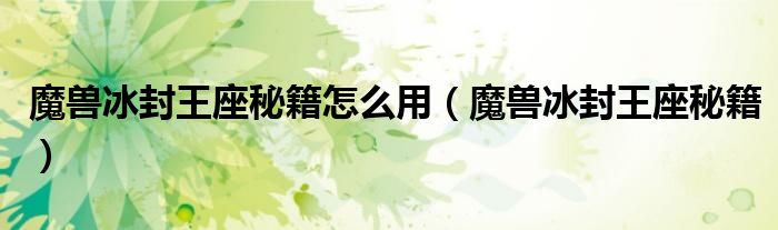 大家好,小飞来为大家解答以上问题,魔兽冰封王座秘籍怎么用,魔兽冰封王座秘籍很多人还不知道,现在让我们一起来看看吧!