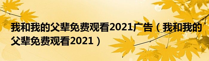 我和我的父辈免费观看2021广告,我和我的父辈免费观看2021很多人还不知道,乐乐来为大家解答以上问题,现在让我们一起来看看吧!