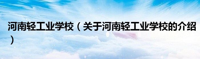 大家好,小都来为大家解答以上的问题。河南轻工业学校,关于河南轻工业学校的介绍很多人还不知道,现在让我们一起来看看吧!