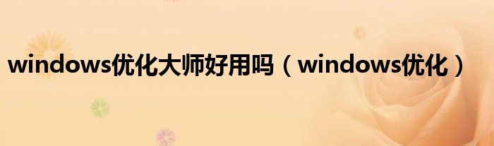 大家好,小飞来为大家解答以上问题,windows优化大师好用吗,windows优化很多人还不知道,现在让我们一起来看看吧!