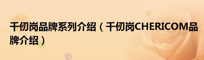大家好,小源来为大家解答以上问题。千仞岗品牌系列介绍,千仞岗CHERICOM品牌介绍很多人还不知道,现在让我们一起来看看吧!
