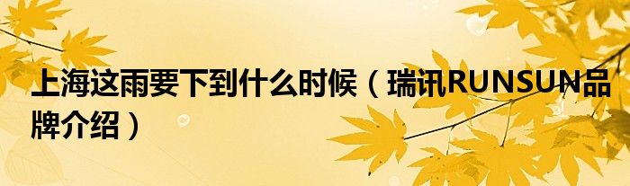 大家好,小源来为大家解答以上问题。上海这雨要下到什么时候,瑞讯RUNSUN品牌介绍很多人还不知道,现在让我们一起来看看吧!