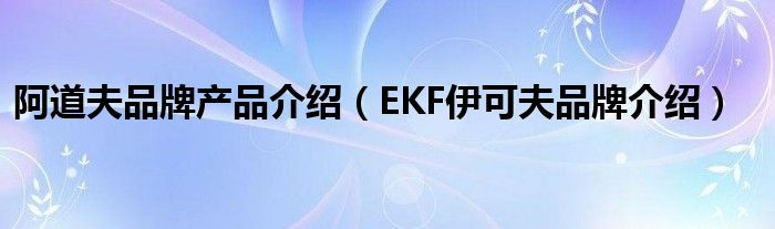 大家好,小源来为大家解答以上问题。阿道夫品牌产品介绍,EKF伊可夫品牌介绍很多人还不知道,现在让我们一起来看看吧!