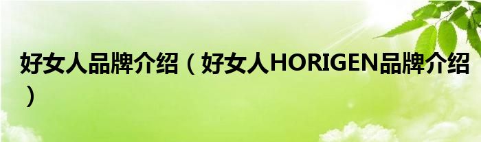 大家好,小源来为大家解答以上问题。好女人品牌介绍,好女人HORIGEN品牌介绍很多人还不知道,现在让我们一起来看看吧!