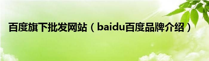 大家好,小源来为大家解答以上问题。百度旗下批发网站,baidu百度品牌介绍很多人还不知道,现在让我们一起来看看吧!