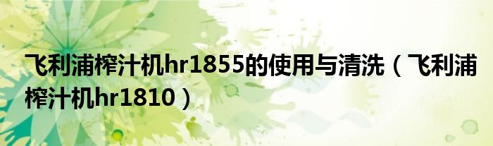 飞利浦榨汁机hr1810的清洗方法