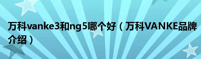 大家好,小源来为大家解答以上问题。万科vanke3和ng5哪个好,万科VANKE品牌介绍很多人还不知道,现在让我们一起来看看吧!