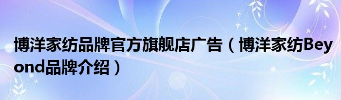 大家好,小源来为大家解答以上问题。博洋家纺品牌官方旗舰店广告,博洋家纺Beyond品牌介绍很多人还不知道,现在让我们一起来看看吧!