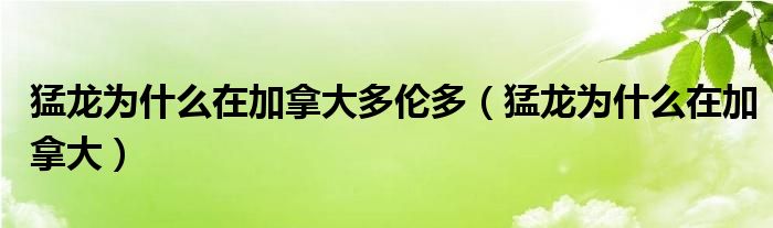 大家好,小晋来为大家解答以下问题,关于猛龙为什么在加拿大多伦多,猛龙为什么在加拿大很多人还不知道,今天让我们一起来看看吧!