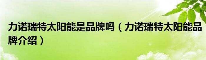 大家好,小源来为大家解答以上问题。力诺瑞特太阳能是品牌吗,力诺瑞特太阳能品牌介绍很多人还不知道,现在让我们一起来看看吧!