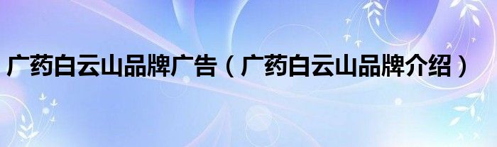 大家好,小源来为大家解答以上问题。广药白云山品牌广告,广药白云山品牌介绍很多人还不知道,现在让我们一起来看看吧!