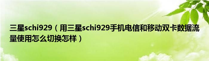 大家好,小常来为大家解答以上问题。三星schi929,用三星schi929手机电信和移动双卡数据流量使用怎么切换怎样很多人还不知道,现在让我们一起来看看吧!