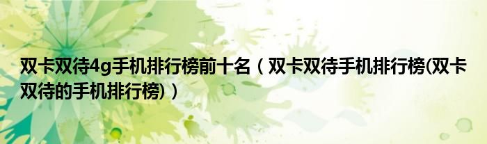 大家好,小常来为大家解答以上问题。双卡双待4g手机排行榜前十名,双卡双待手机排行榜(双卡双待的手机排行榜)很多人还不知道,现在让我们一起来看看吧!