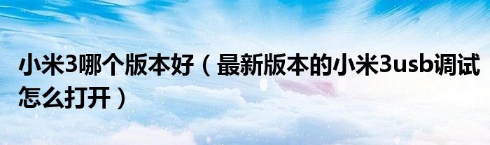 大家好,小常来为大家解答以上问题。小米3哪个版本好,最新版本的小米3usb调试怎么打开很多人还不知道,现在让我们一起来看看吧!